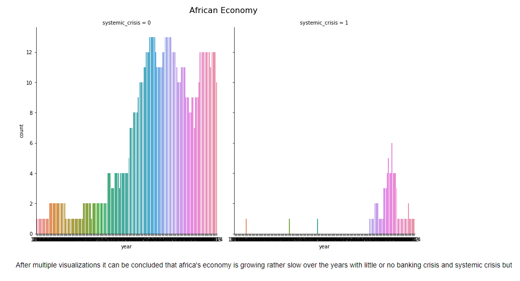 Exploratory data analysis was only carried out on this data set with simple explorations with no deep explorations and model creation as it was the base on instructions given which was; to use EDA to conclude on Africa’s Economy in relation to systemic and banking crisis.